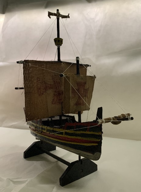 I don't know exactly if it's a caravel, and which of the 3 of Christopher Columbus. I remember my father describing it to me as such, probbaly saying it is the Santa Maria.